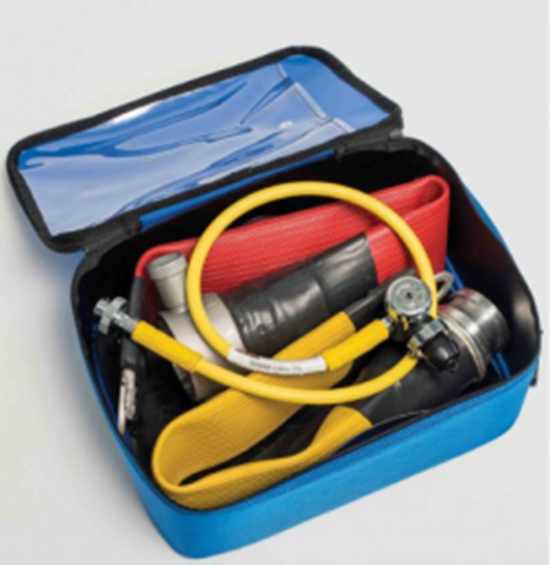 充氣管道救援套組的設(shè)計和開發(fā)旨在提供一種簡單而有效的方式,使用標(biāo)準(zhǔn)長度的消防水帶提供下游安全吊臂或浮動救援輔助設(shè)備。充氣管道救援套組充氣系統(tǒng)可使消防水帶兩端密封,尾部帶2個密封件,公頭末端為黃色,以便清晰識別并在使用時增加可視性。該系統(tǒng)的工作壓力為1.5巴,并使用系統(tǒng)提供的充氣套件進行充氣,該系統(tǒng)配有預(yù)設(shè)3.5巴的壓力調(diào)節(jié)器。母頭的尾巴