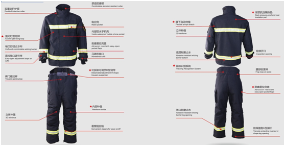 1)消防滅火服外層加強材料,型號:CAF300FRC,克重:(420±21)g/m2,供應商:康帝雅高檔面料(蘇州)有限公司;