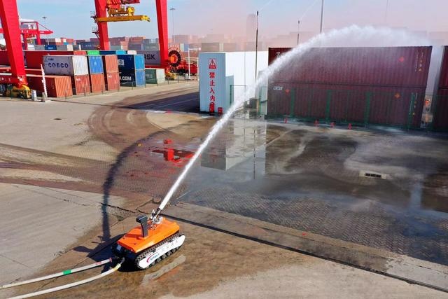 記者在現場看到,長2.2米、寬1.45米,外形酷似“小坦克”的滅火機器人,在工作人員的無線遙控操作下,前面“瞪”著雙眼、后面拖著水管,迅速靠近火勢最猛烈的地方,精準有力地將水噴向燃爆中心,不僅防爆防水,而且水泡射程超過90米!