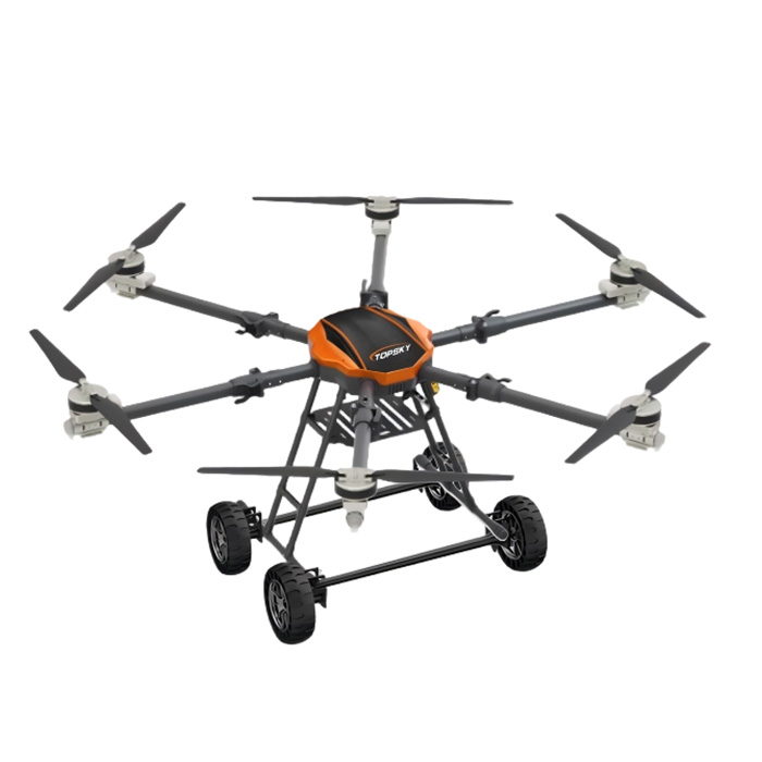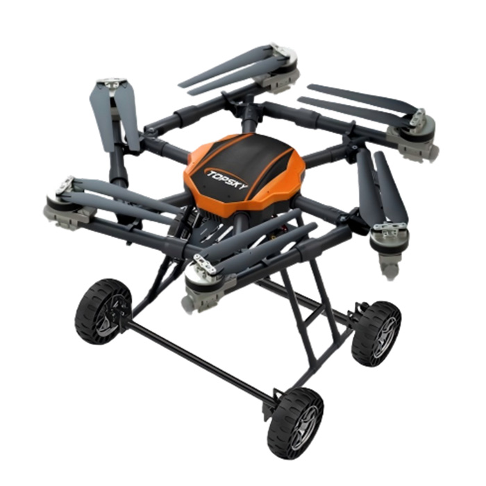 陸空兩棲核生化環(huán)境偵檢無人機(jī)采用六軸六槳設(shè)計,載重大,續(xù)航長,并且機(jī)臂可折疊、標(biāo)準(zhǔn)化負(fù)載接口、集成航電系統(tǒng)、雷達(dá)避障傳感器、RTK與北斗雙冗余定位系統(tǒng)。搭載長距離實(shí)時通訊鏈路,實(shí)時傳輸現(xiàn)場環(huán)境數(shù)據(jù)及無人機(jī)飛行數(shù)據(jù)。配備智能控制系統(tǒng),可滿足多種場景和多種方式的作業(yè)需求。裝配陸行輪,可實(shí)現(xiàn)空中飛行,地面行走雙模式切換,可在不同場景下切換合適的作業(yè)模式。無人機(jī)搭載有輻射探測系統(tǒng)、化學(xué)氣體監(jiān)測系統(tǒng)、生物氣溶膠監(jiān)測系統(tǒng),可在核生化環(huán)境下的進(jìn)行偵查檢測。