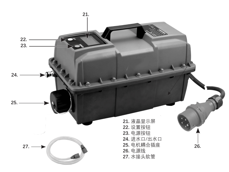 為高頻破拆工具組提供變頻電源,輸出功率可達9000W。內建漏電斷路器的變頻控制器提供充分的電子保護,可用于高低電壓/溫控保護以及對工具產生高電流的電流保護。
