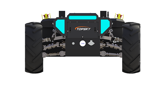 差速輪式機器人底盤采用鋰電池電源作為機器人動力源,使用無線遙控的方式遠距離操控機器人,并可定制復雜的操作模式,主控提供串口/標準CAN總線作為通訊接口。整機采用四輪獨立驅動、四輪差速轉向以及前后雙橫臂獨立懸架結構,具有IP65防塵防水能力,能夠在多種復雜環境運行。同時,整機采用模塊化設計,四獨立懸掛、左右電控箱及電池可快速拆卸維護更換。可搭載多種設備從而代替人進行高效率作業。