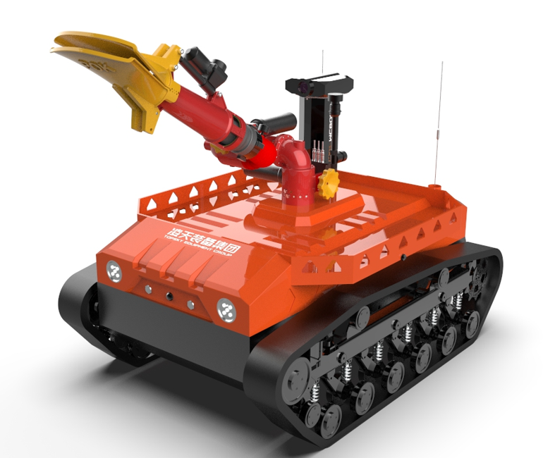 機(jī)器人采用無線遙控設(shè)計,遙控器與監(jiān)視器一體/分離,可實時的顯示電池、內(nèi)部的各種信息,機(jī)器人狀態(tài)、現(xiàn)場溫濕度、有毒有害氣體濃度報警信息等控制機(jī)器人前進(jìn)、后退、轉(zhuǎn)向等運動。具備遠(yuǎn)程偵察能力,機(jī)身搭建升降云臺、高清攝像頭、熱成像攝像頭、氣體傳感器三類環(huán)境感知設(shè)備和云臺控制設(shè)備,也可聯(lián)動聲光報警模塊提醒消防人員或群眾,有效避免危險。在通過遠(yuǎn)程偵察手段有效獲取現(xiàn)場火源信息后,機(jī)器人配備的大功率電機(jī)可以幫助消防人員將消防水袋拖拽至危險火源區(qū)域進(jìn)行滅火,并能搭載各類國內(nèi)、外的多種消防水泡,并能夠遠(yuǎn)程控制發(fā)射水或泡沫。基于所配備的拾音模塊和揚聲器模塊,拾取現(xiàn)場環(huán)境聲音,即使消防官兵未靠近消防現(xiàn)場也能夠聽到搜救現(xiàn)場的群眾呼救聲,并通過揚聲器模塊與群眾進(jìn)行現(xiàn)場對話。