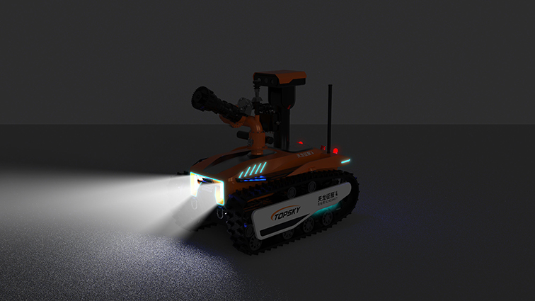 機(jī)器人采用無(wú)線遙控設(shè)計(jì),遙控器與監(jiān)視器一體/分離,可實(shí)時(shí)的顯示電池、內(nèi)部的各種信息,機(jī)器人狀態(tài)、現(xiàn)場(chǎng)溫濕度、有毒有害氣體濃度報(bào)警信息等控制機(jī)器人前進(jìn)、后退、轉(zhuǎn)向等運(yùn)動(dòng)。具備遠(yuǎn)程偵察能力,機(jī)身搭建升降云臺(tái)、高清攝像頭、熱成像攝像頭、氣體傳感器三類環(huán)境感知設(shè)備和云臺(tái)控制設(shè)備,也可聯(lián)動(dòng)聲光報(bào)警模塊提醒消防人員或群眾,有效避免危險(xiǎn)。在通過(guò)遠(yuǎn)程偵察手段有效獲取現(xiàn)場(chǎng)火源信息后,機(jī)器人配備的大功率電機(jī)可以幫助消防人員將消防水袋拖拽至危險(xiǎn)火源區(qū)域進(jìn)行滅火,并能搭載各類國(guó)內(nèi)、外的多種消防水泡,并能夠遠(yuǎn)程控制發(fā)射水或泡沫。基于所配備的拾音模塊和揚(yáng)聲器模塊,拾取現(xiàn)場(chǎng)環(huán)境聲音,即使消防官兵未靠近消防現(xiàn)場(chǎng)也能夠聽(tīng)到搜救現(xiàn)場(chǎng)的群眾呼救聲,并通過(guò)揚(yáng)聲器模塊與群眾進(jìn)行現(xiàn)場(chǎng)對(duì)話。