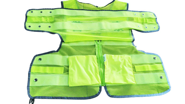 具有整潔美觀,平服的特點(diǎn),線路規(guī)整,左右對稱,無開線、斷線、跳線、毛露、線頭、污漬、殘疵。產(chǎn)品基底顏色為熒光黃色;反光帶顏色為銀白色;縫紉線顏色應(yīng)與縫合部位的基底材料或反光材料顏色相匹配;前后晶格標(biāo)識可絲印定制文字