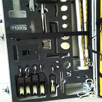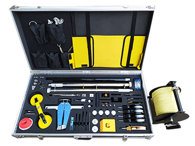 排爆繩鉤組PBSGZ-WAMK401也叫MK4排爆繩鉤組,由主繩線盤、帶套尼龍繩索、帶套鋼絲繩索、抓繩器、拖箕、鉤子、彈簧夾子等多種部件組成。通常將5×100米的主繩繞在線盤上,搭配各種器具,可實現多種功能。