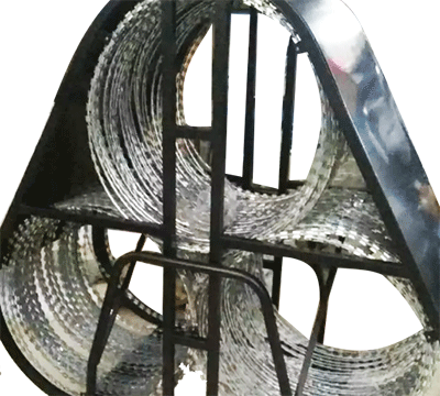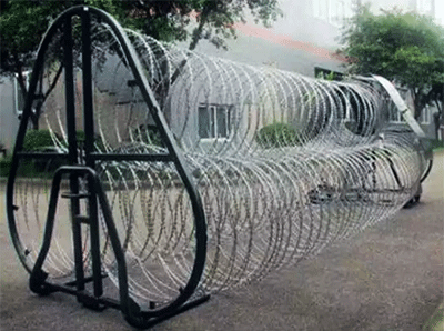 刀片鋒利,阻隔性強,不借助器械難以攀爬、翻越。整體結構穩定,兩端為支撐框架結構,伸縮網和框架一體式聯接。部分產品底部可能帶有橡膠滾輪,可萬向調節推動,移動方便。