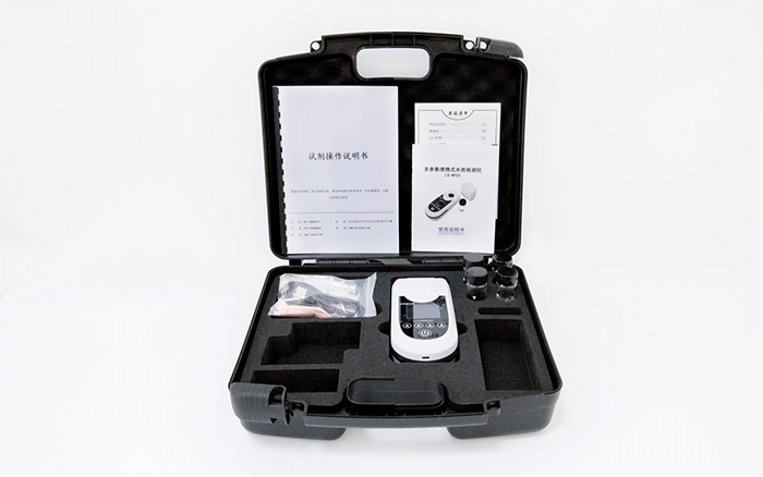 便攜式水質檢測儀(氨氮納氏法/氨氮水楊酸法/余氯/總氯/臭氧/二氧化氯/硫化物/溶解氧/磷酸鹽/硝酸鹽/亞硝酸鹽/堿度/硬度/PH/六價鉻/銅/總鐵/氟化物/氰化物/氯化物/碘/溴等參數)是智能水質快速分析儀器,儀器采用進口高亮度準平行LED冷光源和光學結構設計,光學性能和檢測效果極佳。