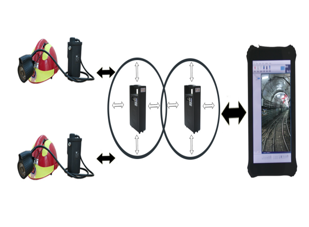 該系統(tǒng)采用無線通信網(wǎng)絡(luò)采用自組織、自愈合方式快速形成多跳鏈狀或網(wǎng)狀網(wǎng)拓撲結(jié)構(gòu),無線通信距離不小于2000米,具有快速部署、高帶寬、低時延、可靠性強等特點。井下救援人員或工作人員,通過佩戴礦用本安型平板計算機、配套的低照度攝像頭自帶語音通話、無線中繼器等裝備,將現(xiàn)場的實時圖像、語音等信息實時回傳到指揮平臺,調(diào)度指揮人員可以實時了解現(xiàn)場情況,并對現(xiàn)場人員進行調(diào)度指揮。