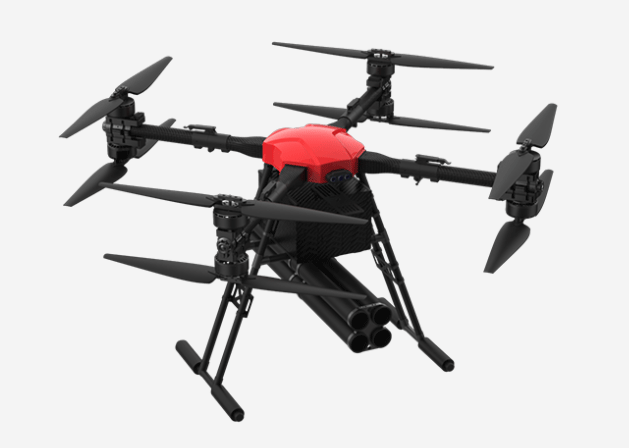 機載發射器可搭配中型無人機,裝載滅火彈,進行城市消防滅火使用的一款裝置系統,它方便城市高層間飛行且便于管理。