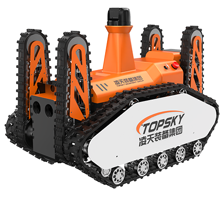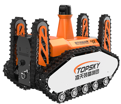 1.主要功能:履帶式防爆機器人底盤采用鋰電池電源作為動力源,使用無線遙控的方式遠距離操控,可搭載形式多樣,原地旋轉設計可使得運更靈活。