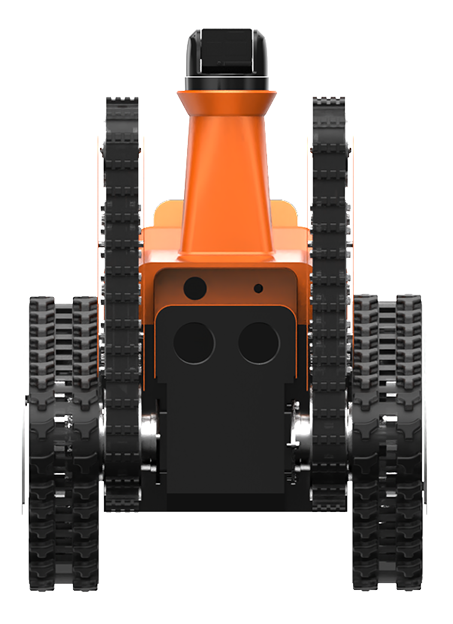 車體設有擺臂,可越過垂直700mm障礙,跨越1米的壕溝